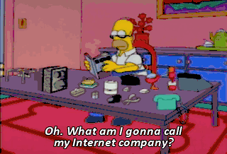 Oh. What am I gonna call my Internet company? All the good names are taken. Oh, wait. I've got it. Flancrest Enterprises. D'oh! What exactly is it your company does again?