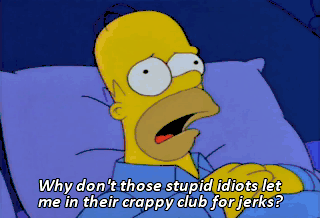 Why don't those stupid idiots let me in their crappy club for jerks? I'm sure it's nothing personal, Homer.