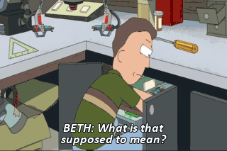 BETH: What is that supposed to mean? Your dad gets to walk all over us because of your abandonment issues. He's playing you, shorty.