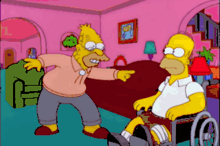 Now you're the shut-in, and I'm the hip young dude! There goes my wagging finger. I'm so bored! Aw, come on. There's lots of ways to pass the time. Hitch up your pants, air whittle.