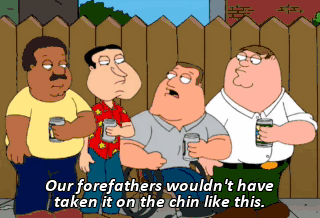 Our forefathers wouldn't have taken it on the chin like this. You're damn right. I say we fight the British and drive them back to whatever country they came from!
