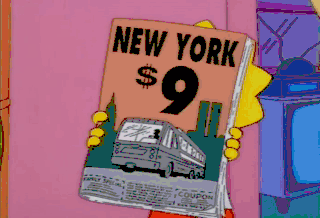 Lousy Bart and his money. All right, New York, I'm comin' back!