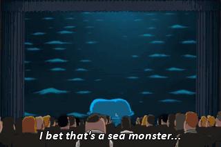 I bet that's a sea monster... That's not the movie. (SERENE MUSIC PLAYING) That's... Yeah, I think I heard of them.