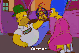 Come on. Let's get you inside and scrape the gum out of your hair. Okay. Hey, Marge. What's your favorite radio station? Well, Marge? What? What's your favorite radio station? Okay, Dad, we're ready!