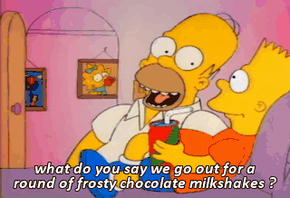 what do you say we go out for a round of frosty chocolate milkshakes ?
