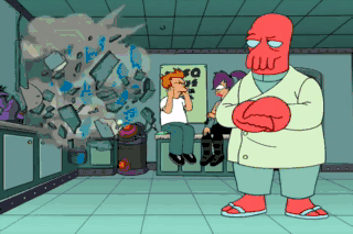 Bad news, nobody. The supercollider super-exploded! I need you to take it back and exchange it... for a wobbly C.D. rack and some of those rancid meatballs.