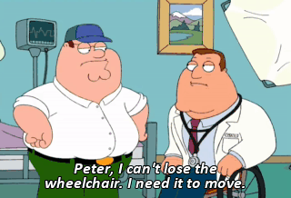 Peter, I can't lose the wheelchair. I need it to move.