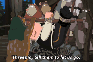 Threepio, tell them to let us go.