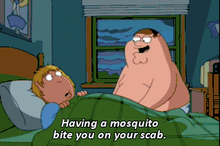 Having a mosquito bite you on your scab. (THUNDER RUMBLING) Oh! There's your thunder. Okay, let's try again. Okay. Swallowing a razor blade accidentally. (THUNDER RUMBLING) Oh, crap! It's getting closer.