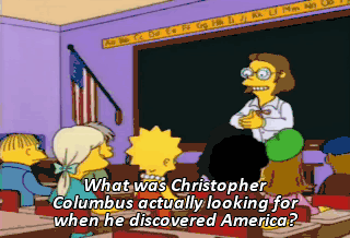 What was Christopher Columbus actually looking for when he discovered America? Ooh! Ooh! Anyone besides Lisa for a change?