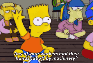 Any of your workers had their hands cut off by machinery?