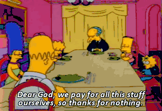 Dear God, we pay for all this stuff ourselves, so thanks for nothing. Only an innocent child could get away with such blasphemy. God bless them all. Amen.