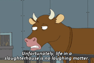 Unfortunately, life in a slaughterhouse is no laughing matter.