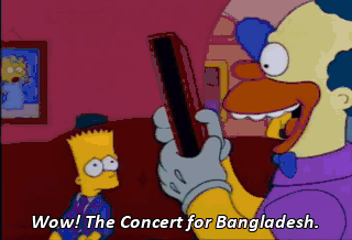 Wow! The Concert for Bangladesh. Good night, Krusty. Sorry about your dad. Don't worry about me-- I'm a survivor.