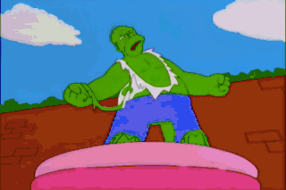 Homer mad! Aah! Aah! Thank God his pants stayed on. Ohh! Homer mad! Homer smash! Get revenge on world!
