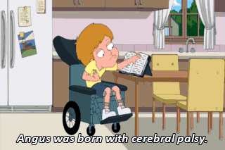 Angus was born with cerebral palsy.