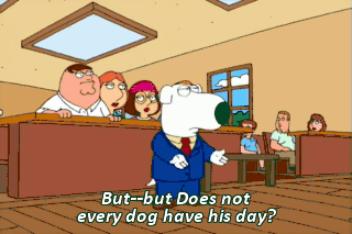 But--but Does not every dog have his day? Wait! Please! I gotta say something! Look, all Brian's ever wanted is the same respect he gives us. That and Snausages. He's mental for those Snausages.