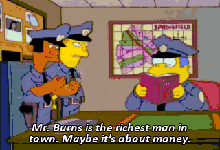 Mr. Burns is the richest man in town. Maybe it's about money.