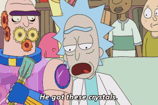 He got these crystals. And these babies just saved this lame-ass party! Wubba, Iubba, dub, dub!