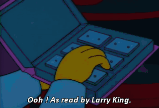 Ooh ! As read by Larry King. Hi. I'm Larry King. "In the beginning, God created the heaven and the earth. And the earth was without form--"