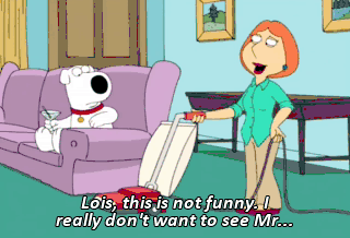 Lois, this is not funny. I really don't want to see Mr... (VACUUM WHIRRING) Stop! Stop it! Stop it! It's scaring me! Leave me alone! It's so loud!