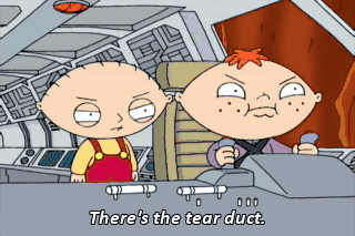 There's the tear duct. We've gotta make him cry. I think I know just the way. All right. Follow my lead. Love lift us up where we belong
