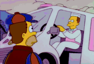 Wow. Marge, what are you doing up? You need rest. I heard a noise outside, and thought it might be Homer. Ay! What the hell. Marge, I've got 2½ words for you. Gulp 'n' Blow.