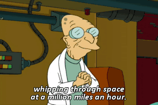 whipping through space at a million miles an hour. Ooh! Whoo! Whoo! Whoo!