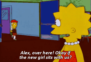 Alex, over here! Okay if the new girl sits with us? - Oh! - Okay, I guess. She's a little weird. But let's give her a chance. Guys, this is Alex. Ooh, twins.