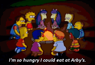 I'm so hungry I could eat at Arby's. Oh, my gosh! Oh, wow! She really is hungry. She's really hungry.