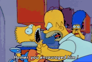 Homer, you encouraged him ! You should be strangling yourself ! She's right !