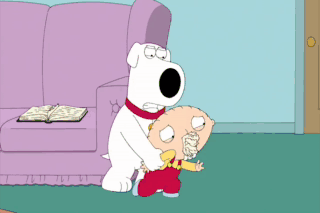 Get in there! Hold still, Stewie! (BOTH GRUNTING) (COUGHING) I'm not saying I like pain, but I'm not saying I don't like it, either.