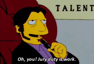 Oh, you! Jury duty is work. And, listen, you keep getting seen in public with human females, and I can get you work in the entertainment industry.