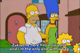 Everyone here has a six-pack, and I'm the only one with a keg. Oh, God! Cover up!