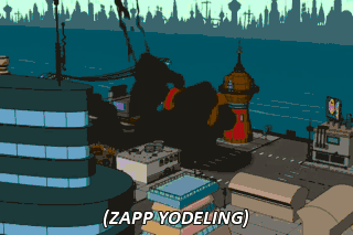 (ZAPP YODELING) Yet, thanks to my trusty safety sphere, I sublibed with only tribial brain dablage. And the others? Right here, behind this horror-cloth. Are they dead? No, no, no, no. Much worse.