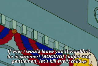 If ever I would leave you It wouldn't be in summer! (BOOING) Ladies and gentlemen, let's kill every child...