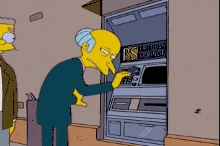 Oh, Smithers, guide me in. My pleasure, sir. Smithers, what's my password? It's your age, sir. Excellent. Let's see. What's the smallest amount of money I can think of?
