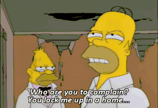 Who are you to complain? You lock me up in a home... and give me the same damn shower-safety seat every Christmas. Your whole life you never said one nice thing to me.