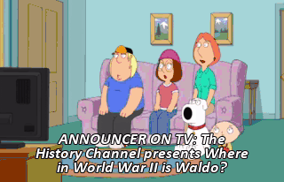 ANNOUNCER ON TV: The History Channel presents Where in World War II is Waldo? (ARTILLERY FIRING) Do I sound sexy?