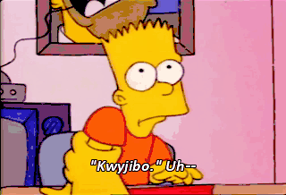 "Kwyjibo." Uh-- A big, dumb, balding, North American ape with no chin. And a short temper. I'll show you a big, dumb, balding ape ! Uh-oh. Kwyjibo on the loose.