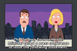 The German Environmental Minister called a press conference to issue the following statement. I see nothing! I know nothing! Holy crap! Did you hear that, Lois?