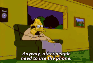 Anyway, other people need to use the phone. Mm-mmm. I've already talked to her for 20 damn minutes. Hmm? Oh!