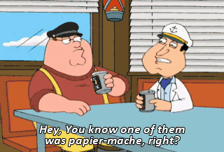 Hey, You know one of them was papier-mache, right? Oh, jeez! Can I change my answer? Of course I know it's paper! I don't care! What's wrong with you? Ha! What about you, Quagmire?