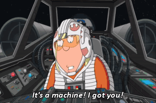 (PETER MIMICS LASER SHOOTING) You've reached Han Solo. Please leave a message after the blorp.