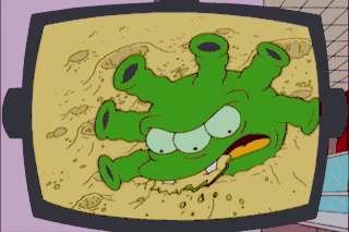 (SCREAMS) He's eating my beauty! Mmm-hmm. Skin mites love the taste of beauty! Try this rejuvenating lotion. It contains over 60 ingredients. Ooh! (MOANING)