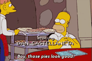 Boy, those pies look good! Open your gullet, you human blob.