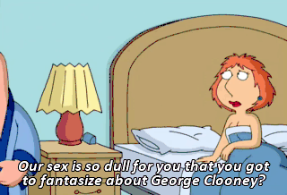 Our sex is so dull for you that you got to fantasize about George Clooney? I'm sorry, honey. I guess that things have become a little stale for me.