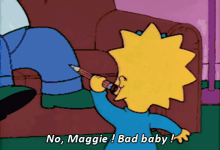 No, Maggie ! Bad baby ! Keep her away from me, Marge ! She's got that crazy look in her eyes again ! So television's responsible. Hey, we were watching that ! Mom, what are you doing ?