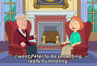 I want Peter to do something really humiliating. Well, what did you have in mind? He has to shoot and star in a shot-for-shot remake of Liar Liar for my amusement.