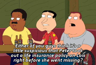 Either of you guys think it's a little suspicious that Peter took out a life insurance policy on Lois right before she went missing?